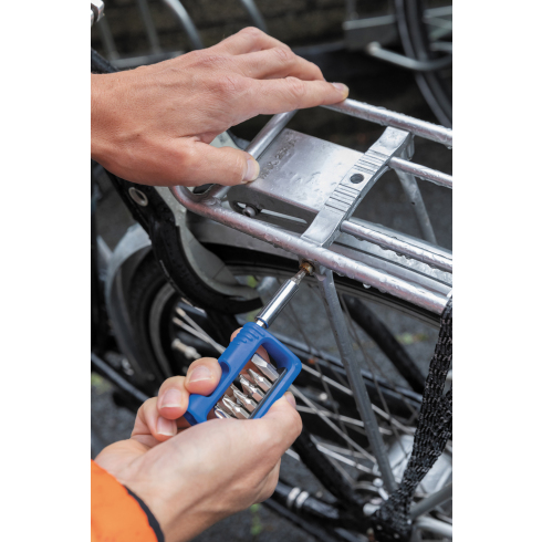 В набор, который с легкостью поместится в карман, входят 12 бит и удлинитель 2” из нержавеющей стали. Кейс из ABS-пластика со встроенным держателем для бит. В комплекте: 3 отвертки TORX (10,15,25), 3 шестигранника (3 мм, 4 мм, 5 мм), 3 отвертки Philips (1,8 мм, #0 #2), 3 плоских отвертки (1,8 мм, #3 #5). Есть зажим для крепления на пояс или карман.