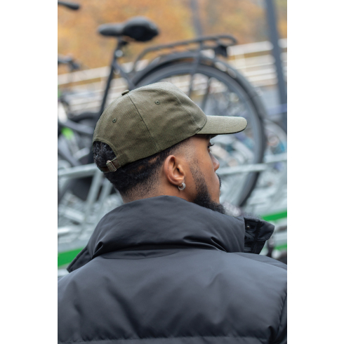 Никакого гринвошинга, только по-настоящему экологичное производство! Коллекция Impact сделана с добавлением индикатора AWARE™, наличие которого гарантирует, что в изделиях использованы подлинные переработанные материалы, а в процессе производства особое внимание уделялось экономии воды. 2% с продаж коллекции мы перечисляем в поддержку всемирной организации Water.org. При производстве этой бейсболки мы сэкономили 387 литров воды. Простой и удобный аксессуар, который подойдет и мужчинам, и женщинам. 5 клиньев, изогнутый козырек, простроченные отверстия для вентиляции и металлическая пряжка. Ткань сделана из 100% переработанных материалов с добавлением индикатора AWARE™. Плотность 280 г/м2. Размер 58 см.