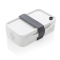 Стильный и прочный ланчбокс поможет с легкостью взять с собой здоровый перекус. Достаточно вместительный для сэндвичей и салатов. Кроме того, в нем можно разогреть второе блюдо, например, пасту или рис. Сделан из PP, подходит для посудомоечной машины и микроволновой печи. В комплекте идут ложка-вилка и эластичный ремешок. Объем контейнера: 1,2 л.