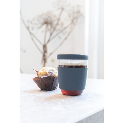 Наслаждайтесь любимыми напитками с помощью этого стильного стакана Ukiyo из боросиликатного стекла с силиконовой крышкой и держателем. Минималистичный дизайн и удобство использования. Небольшое отверстие в крышке сделано специально для отведения пара. Не содержит BPA. Объем 360 мл.