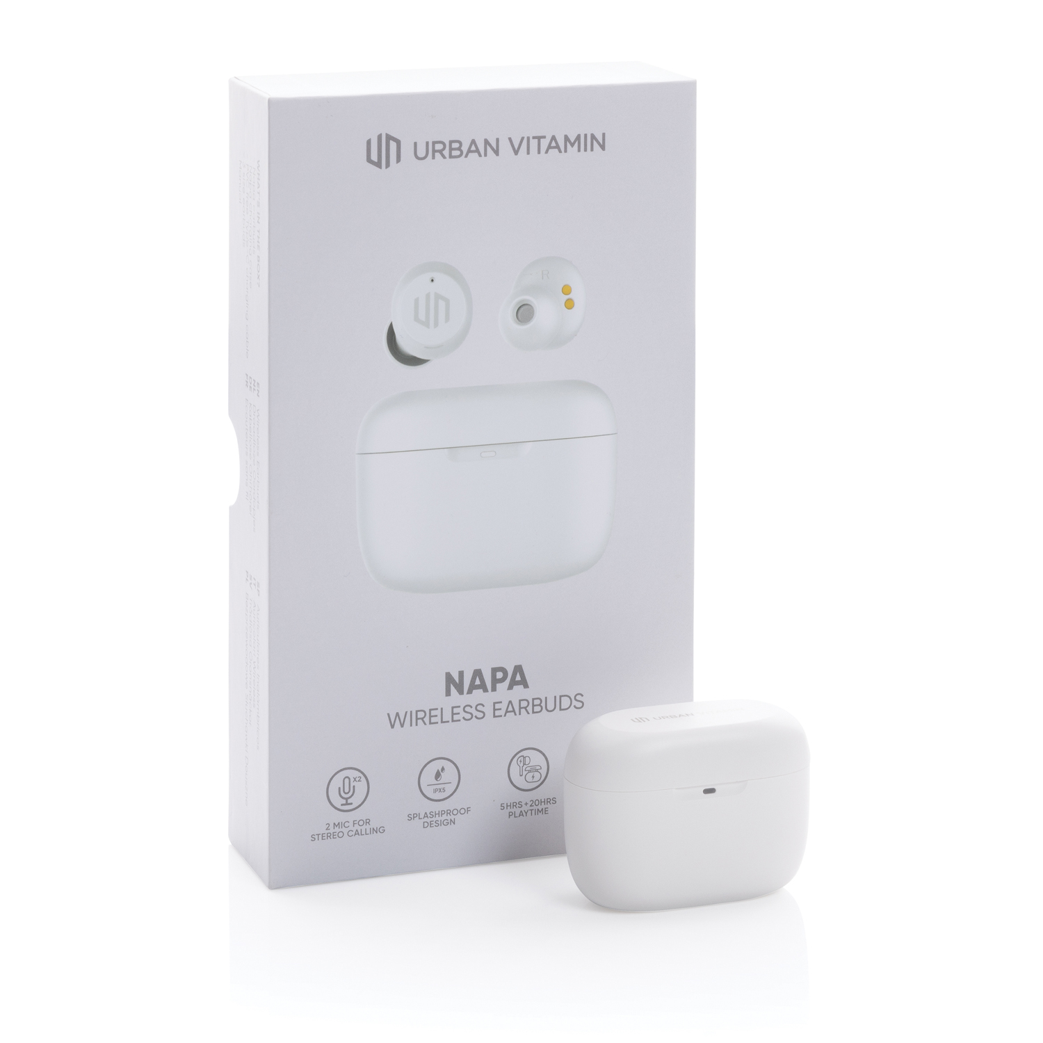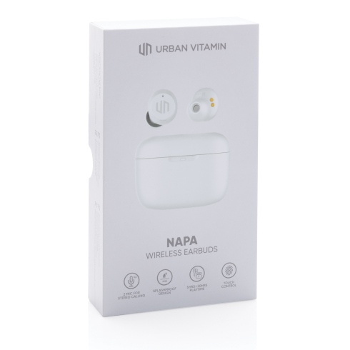 Готовы услышать по-настоящему мощные басы? Тогда наушники Napa от Urban Vitamin для вас! Невероятный звук в компактной упаковке. Стильные наушники работают до 5 часов без перерыва, после чего их легко подзарядить с помощью кейса, рассчитанного на 20 дополнительных часов. 2 встроенных микрофона обеспечивают безупречное звучание во время телефонных звонков. Просто коснитесь сенсора на наушнике, чтобы начать или завершить вызов. Степень защиты IPX 5 делает наушники устойчивыми к любым погодным условиям, поту и брызгам, поэтому они идеально подойдут для занятий спортом на свежем воздухе. Изделия Urban Vitamin не содержат ПВХ и упакованы без лишнего пластика.