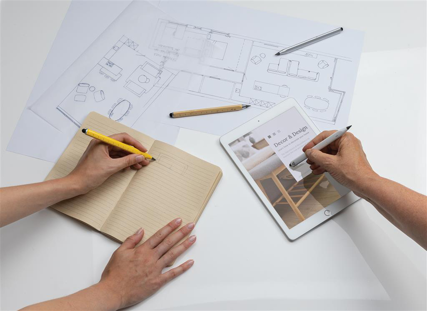 Многофункциональный вечный карандаш — экологичная альтернатива обычному, деревянному. Он прослужит намного дольше: заявленная длина письма — 20 000 метров, тогда как у обычного она составляет всего 200 метров. Так, один вечный карандаш может пережить 100 своих деревянных собратьев! Его штрих четкий и ровный, а написанное легко стирается ластиком. Сенсорный наконечник карандаша можно использовать как стилус для управления мобильным устройством. Корпус выполнен в треугольной форме и играет роль линейки. На одной грани нанесена сантиметровая разметка (до 11 см), на второй — дюймовая (4 дюйма). Карандаш изготовлен из стопроцентного бамбука, сертифицированного FSC. Крафтовая упаковка, сертифицированная FSC, тоже может служить линейкой.