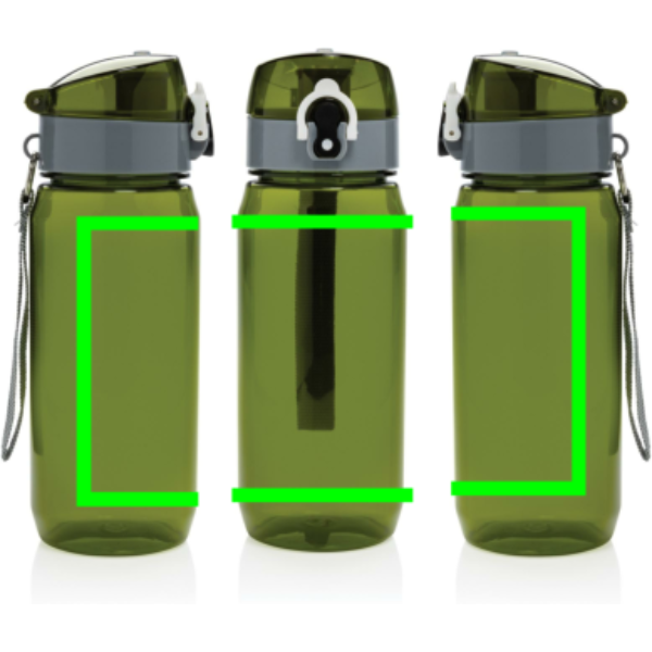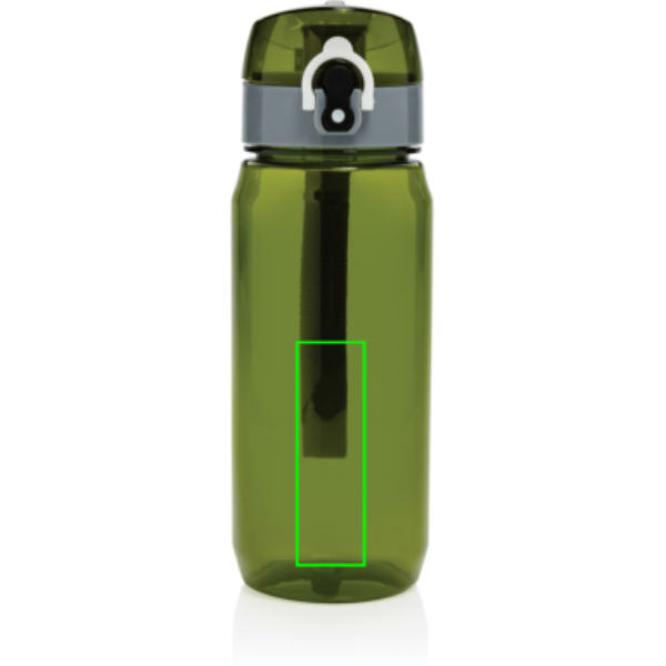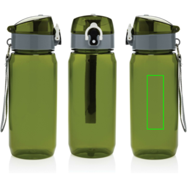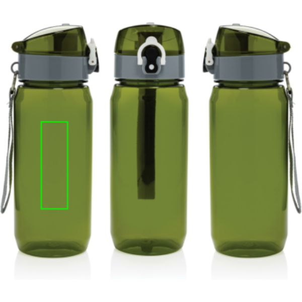 Позаботьтесь о природе вместе с герметичной бутылкой для воды Yide. Одноразовые бутылки и стаканчики больше не нужны — эта бутылка прослужит долгое время. Она изготовлена из переработанных пластиковых бутылок и не содержит BPA. Прочная и легкая, она вмещает до 600 миллилитров жидкости. Наливать в нее стоит только холодные напитки. Обратите внимание на крышку: она легко открывается нажатием на кнопку и оснащена фиксатором, который не даст напитку пролиться. Благодаря широкой петле бутылку можно подвесить к рюкзаку, сумке или носить на запястье, освободив руки. Сертифицировано RCS. Эта сертификация полностью контролирует путь поставок переработанных материалов и гарантирует их наличие в изделии.