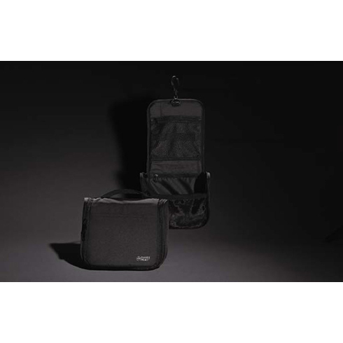 Дорожная косметичка Lohan — это стиль и комфорт в любой поездке. Большая и вместительная, она позволит взять с собой и косметику, и предметы гигиены. В косметичке есть одно общее отделение, четыре дополнительных, два открытых сетчатых кармана и один — на застежке-молнии. С внутренней стороны есть петля для крючка, который входит в комплект: так косметичку можно подвесить для большего удобства. Как и остальные продукты Swiss Peak, косметичка выполнена в глубоком черном цвете и смотрится очень стильно, строго и по-деловому. Она станет отличным подарком, который поможет поддерживать порядок во время поездок и мужчинам, и женщинам. Содержание вторичных материалов: 100%. Сертифицировано AWARE™. Наличие индикаторных частиц AWARE™ подтверждает, что мы действительно используем переработанные материалы. 2% с продажи каждой вещи, отмеченной сертификатом AWARE™, мы перечисляем в поддержку всемирной организации Water.org.