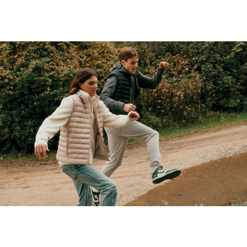 Стеганый жилет Meru согреет даже в самые холодные дни. Это экологичное решение: безрукавка на 100% изготовлена из переработанного полиэстера — в том числе, из него сделан и утеплитель. Жилет и карманы застегиваются на молнии со скрытой спиралью: это делает застежку водонепроницаемой. Пуллеры (собачки) молнии окрашены в тон жилету. Его можно носить как под основной курткой, так и в качестве верхней одежды осенью или весной. Ткань, из которой он изготовлен, успешно защищает от влаги благодаря водоотталкивающей пропитке. Тонкий, легкий, но теплый жилет подойдет для занятий спортом, прогулок и поездок. Плотность материала — 70 г/м². Сертифицировано OEKO-TEX® STANDARD 100. Сертифицировано AWARE™. Наличие индикаторных частиц AWARE™ подтверждает, что мы действительно используем переработанные материалы. 2% с продажи каждой вещи, отмеченной сертификатом AWARE™, мы перечисляем в поддержку всемирной организации Water.org.