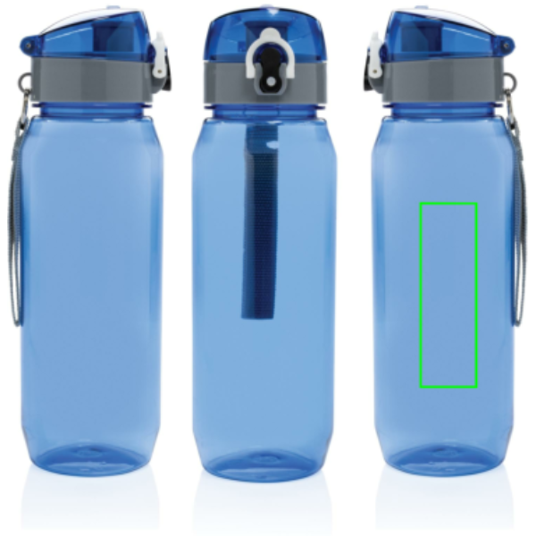 Позаботьтесь о природе вместе с герметичной бутылкой для воды Yide. Одноразовые бутылки и стаканчики больше не нужны — эта бутылка прослужит долгое время. Она изготовлена из переработанных пластиковых бутылок и не содержит BPA. Прочная и легкая, она вмещает до 800 миллилитров жидкости. Наливать в нее стоит только холодные напитки. Обратите внимание на крышку: она легко открывается нажатием на кнопку и оснащена фиксатором, который не даст напитку пролиться. Благодаря широкой петле бутылку можно подвесить к рюкзаку, сумке или носить на запястье, освободив руки. Все переработанные материалы имеют сертификат RCS, который гарантирует полный контроль цепочки поставок переработанных материалов.