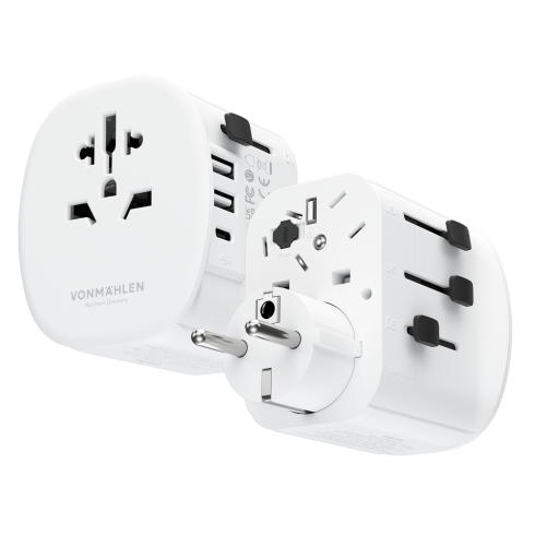 VONMAHLEN Unity One — это компактное дорожное зарядное устройство и идеальный спутник, куда бы вы ни отправились. Адаптер совместим с розетками более чем в 150 странах. Мощность до 2300 Вт, два порта USB-A и один порт USB-C (15 Вт) позволяют заряжать несколько устройств одновременно. В VONMAHLEN Unity One встроена защита от перегрузки и короткого замыкания. Это идеальный вариант для быстрой зарядки смартфонов, ноутбуков, фотоаппаратов, бритв и многого другого. Продуманный дизайн выдвижных частей адаптера делает VONMAHLEN Unity One простым и удобным в транспортировке.