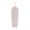 Откажитесь от одноразовых бутылок в пользу экологичной кружки Tana, изготовленной из переработанного пластика. Кружка с двойными стенками станет хорошим подарком для активных людей. Она станет незаменимым спутником во время прогулок, путешествий и поездок. Благодаря стильному внешнему виду ее можно взять с собой и в офис. В кружку можно налить любимый чай, воду или другой напиток: большой объем позволит долго наслаждаться напитком. Уникальной особенностью кружки стала вращающаяся крышка с тремя положениями. В первом кружка будет герметично закрыта и напиток не прольется в сумке или рюкзаке. Во втором положении крышка образует носик для питья, а третье позволяет вставить трубочку в специальное отверстие и пить с ее помощью. Размеры трубочки и отверстия под нее идеально подходят друг другу, и в этом положении напиток не прольется во время движения. Корпус оснащен ручкой — вам будет удобно не только держать кружку, но и носить ее. Основание оптимального размера подходит под большинство автомобильных подстаканников. Объем кружки — 900 миллилитров. Содержание вторичных материалов: 80% от общего веса изделия. Сертифицировано RCS. Эта сертификация полностью контролирует путь поставок переработанных материалов и гарантирует их наличие в изделии.