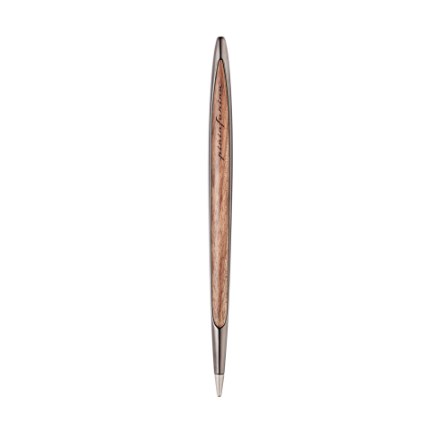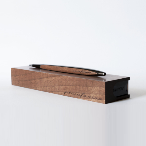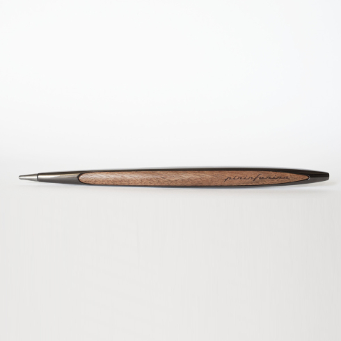 Флагманская ручка дизайнерского дома Pininfarina сочетает в себе роскошь и смелые дизайнерские решения. Pininfarina Cambiano - это объединение различных материалов, технологичность и элегантные линии. Вечная ручка имеет необычный пишущий узел в виде наконечника Ethergraf, который изготовлен из сплава металлов по запатентованной технологии. Он не содержит свинец и алюминий, производится вручную итальянскими мастерами и практически не расходуется за десятилетия использования. При соприкосновении с поверхностью бумаги, происходит химическая реакция и наконечник оставляет серебристый след, который напоминает цвет графитового карандаша, но обладает большей стойкостью. Идеально пишет на каменной бумаге. Корпус ручки выполнен из алюминия с черным глянцевым покрытием и вставками из дерева грецкого ореха. Вес ручки 39 гр, длина 16 см. Коробка выполнена из дерева грецкого ореха и одновременно является настольной подставкой для ручки.