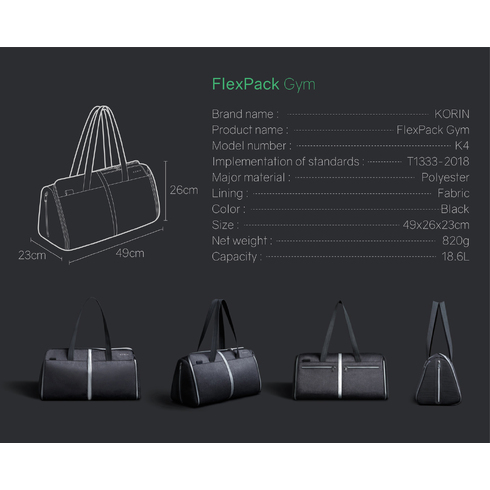 - Спортивная KORIN сумка FlexPack Gym 49х26х23 см, темно-серая