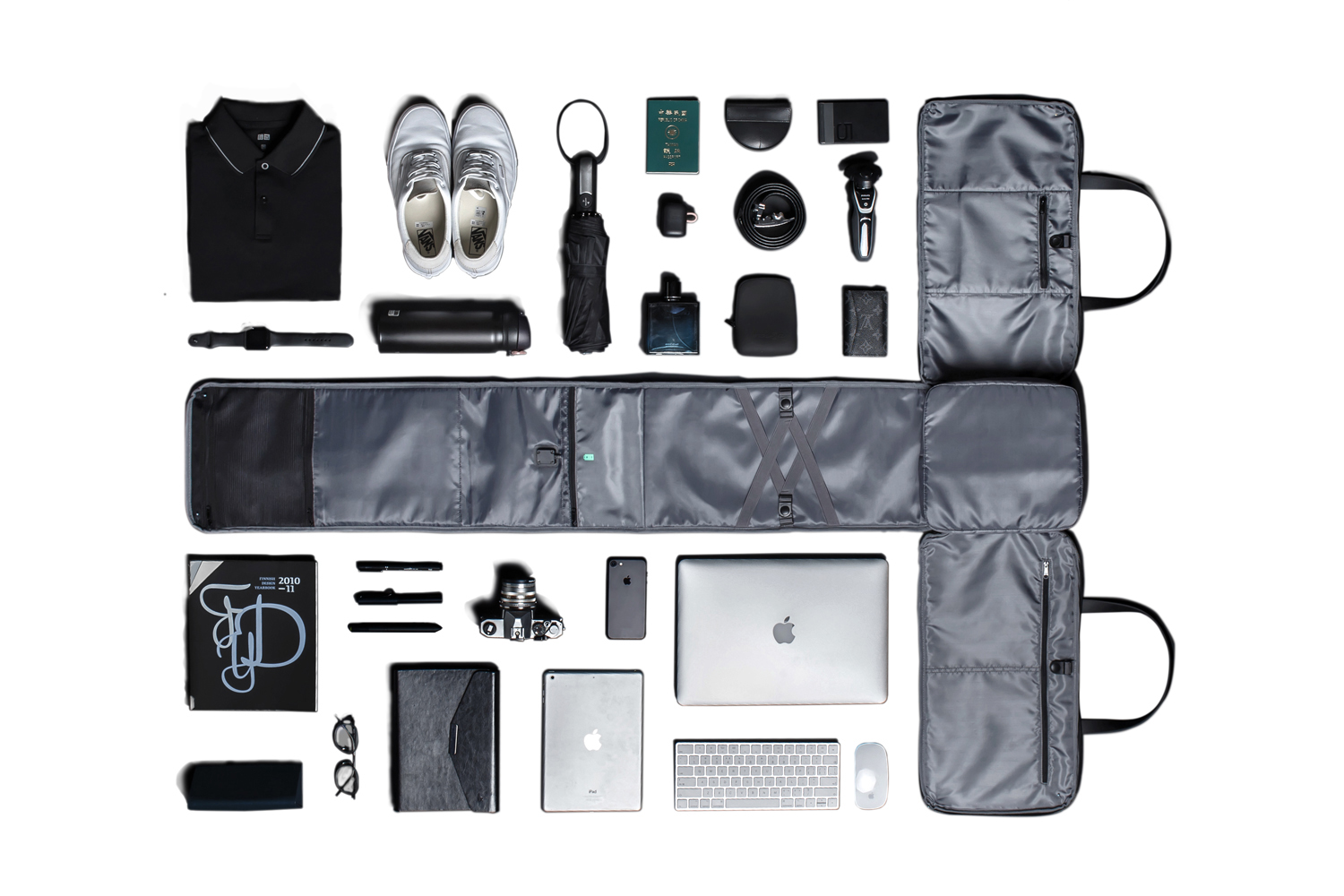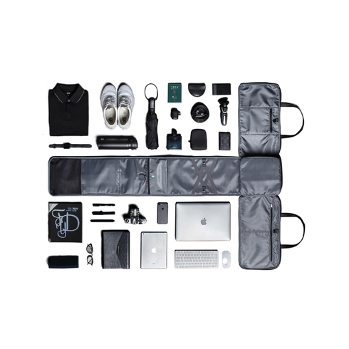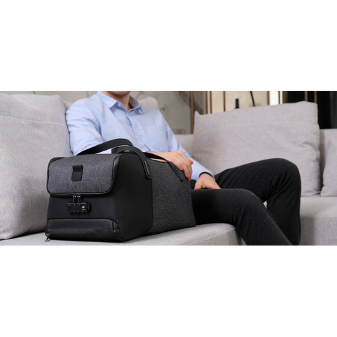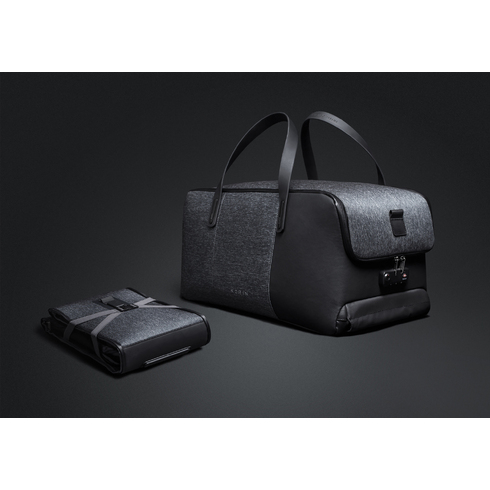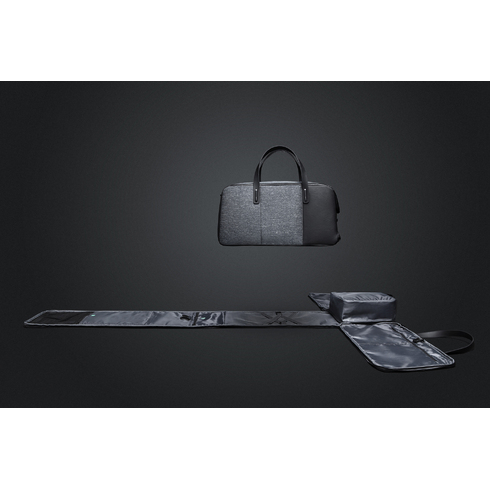Дорожная сумка-трансформер FlexPack Go со съемным плечевым ремнем и прочными резиновыми ручками, обладатель премий Governor Cup Industrial Design Excellence Award, Upstyle Award 2018. Сделана из прочного устойчивого к порезам и трению водоотталкивающего многослойного полиэстера, не требующего специального ухода. Сумка упакована в черную подарочную коробку размером 35х25х11 см.