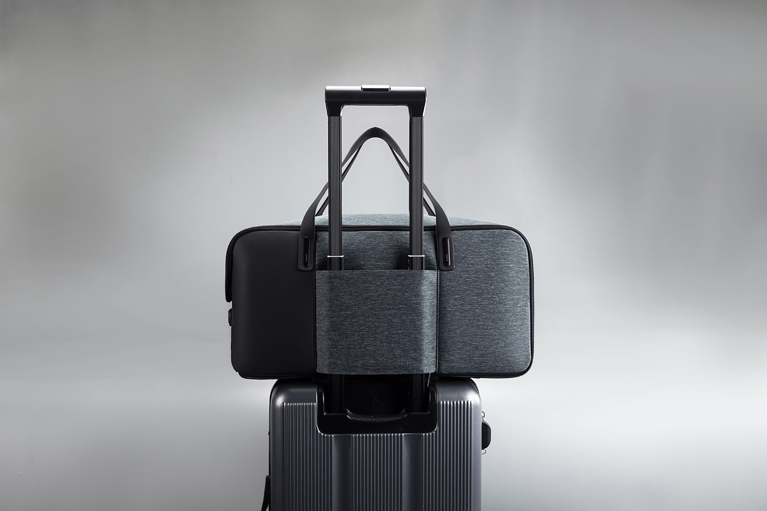 • Молния на дне позволяет превратить карман в лямку для фиксации сумки на ручке чемодана.
