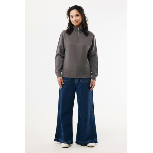 Свитшот на молнии выполнен из 100% хлопка, который на 30% состоит из переработанного и на 70% из органического. Воротник-стойка, втачные длинные рукава и резинка по манжетам и низу. Внутренняя сторона выполнена из френч-терри.