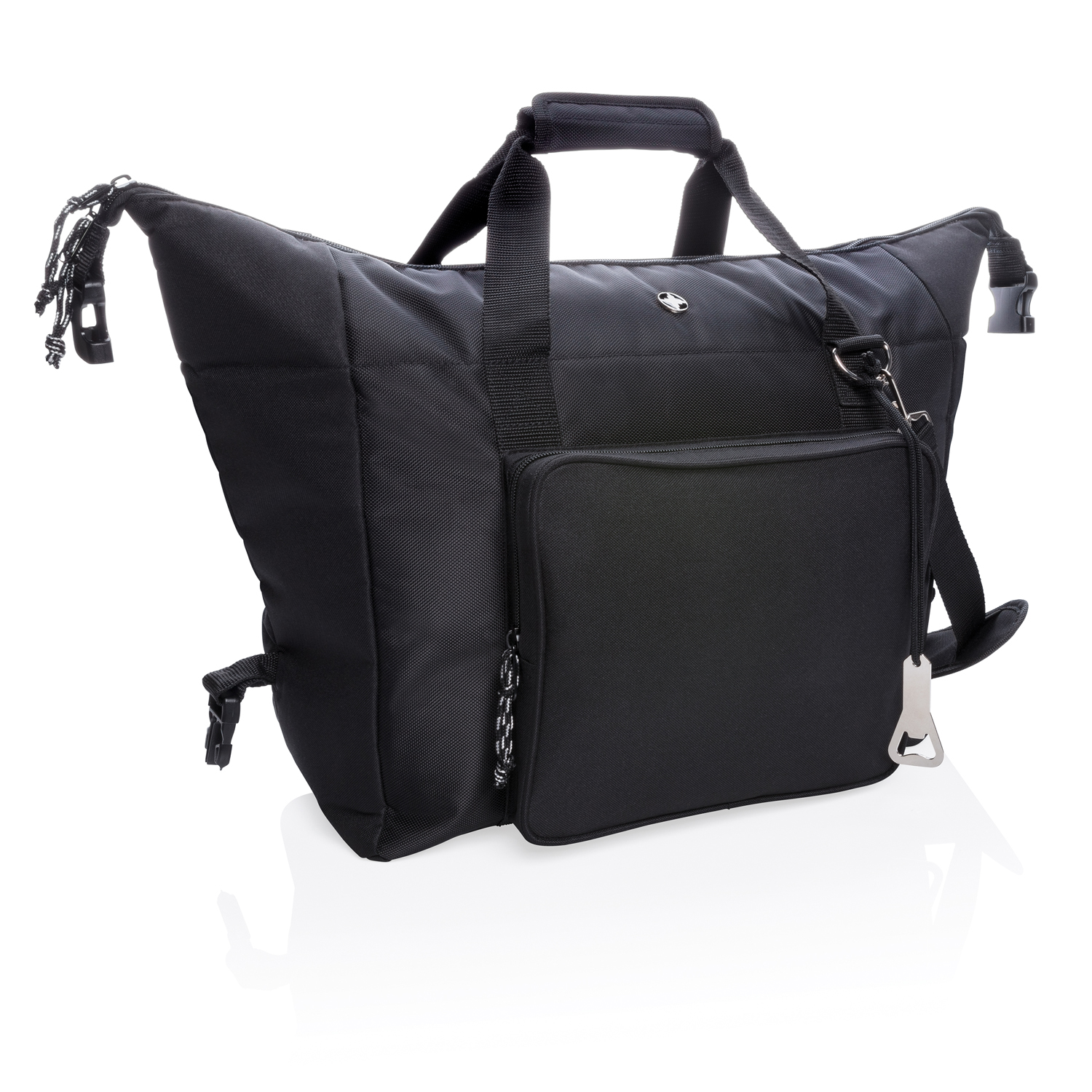 Стильная сумка-холодильник от бренда Swiss Peak изготовлена из двух видов полиэстера (600 D и 1800 D). Просторное основное отделение и передний карман на молнии. Легко трансформируется в обычную вещевую сумку, если убрать боковые накладки. Объем - 40 л (до 10 полуторалитровых бутылок или 52 алюминиевые банки). Двойные ручки повышенной прочности. Съемный плечевой ремень. Поставляется с открывалкой для стеклянных бутылок. Изоляционный слой выполнен из винил-полиэтилена.