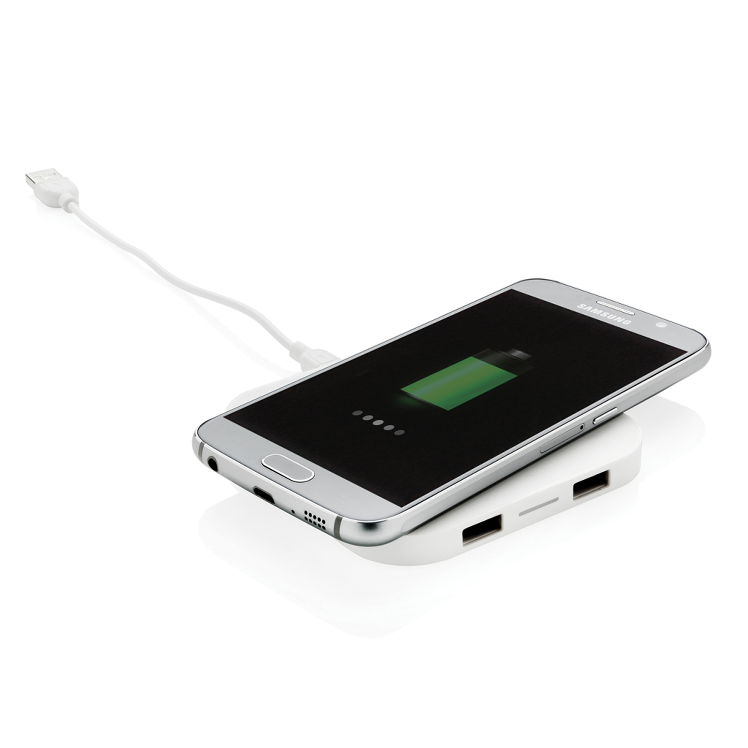 Док-станция для беспроводной зарядки подсоединяется к компьютеру через разъем USB и подходит для последнего поколения мобильных устройств Android и iOS. Более ранние модели можно подзарядить, подключив их через кабель к любому из двух USB-портов. Корпус станции изготовлен из прочного ABS-пластика. Не подходит для синхронизации, только для зарядки. Вход: 1 А. Выход: 5 В / 1 А. Беспроводной выход: 5 Вт.
