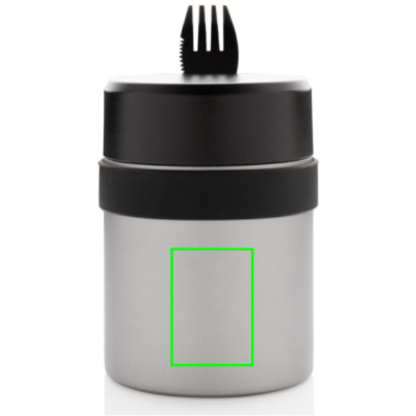 Наслаждайтесь свежей едой без посторонних привкусов и запахов с новым вакуумным термосом для еды Bogota с керамическим напылением. Он сохранит температуру горячих блюд до 5 часов, холодных — до 15 часов. На всю внутреннюю стенку термоса нанесено керамическое покрытие, чтобы вы могли наслаждаться едой без металлического привкуса. Крышка с защитой от протекания. В комплекте со столовым прибором вилка-ложка-нож 3 в 1. Объем: 400 мл. Зарегистрированный дизайн®