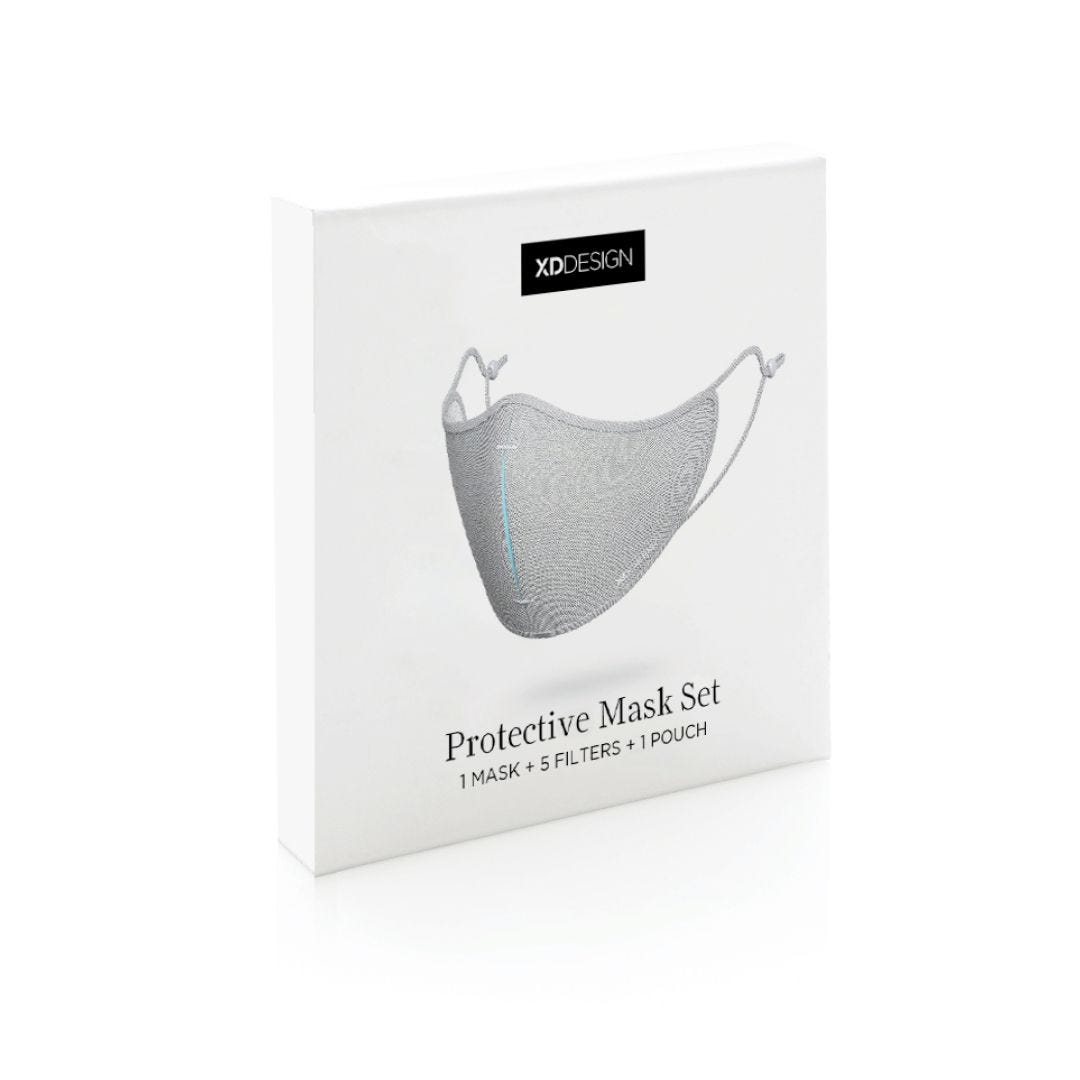 Комфортная защитная маска XD DESIGN для ежедневного использования. Легкая трехслойная конструкция. Внешняя ткань — полиэстер, обработанный по технологии ViralOff®, уничтожающей до 99% вирусов в течение 2 часов. Средний слой — уникальный фильтр Hyproof® с доказанной эффективностью фильтрации до 95%. Внутренний слой сделан из полиэстера. Трехмерная форма подбородка и гибкая переносица для комфортного использования. Состав сета: 1 многоразовая маска, которую можно стирать; 5 многоразовых фильтров; чехол для гигиеничного хранения маски и сменных фильтров. Не относится к товарам медицинского назначения (согласно Постановлению EU / 2017/745 о хирургических масках) и средствам индивидуальной защиты (согласно Постановлению EU / 2016/425 о фильтрующих масках типа FFP2). Зарегистрированный дизайн®