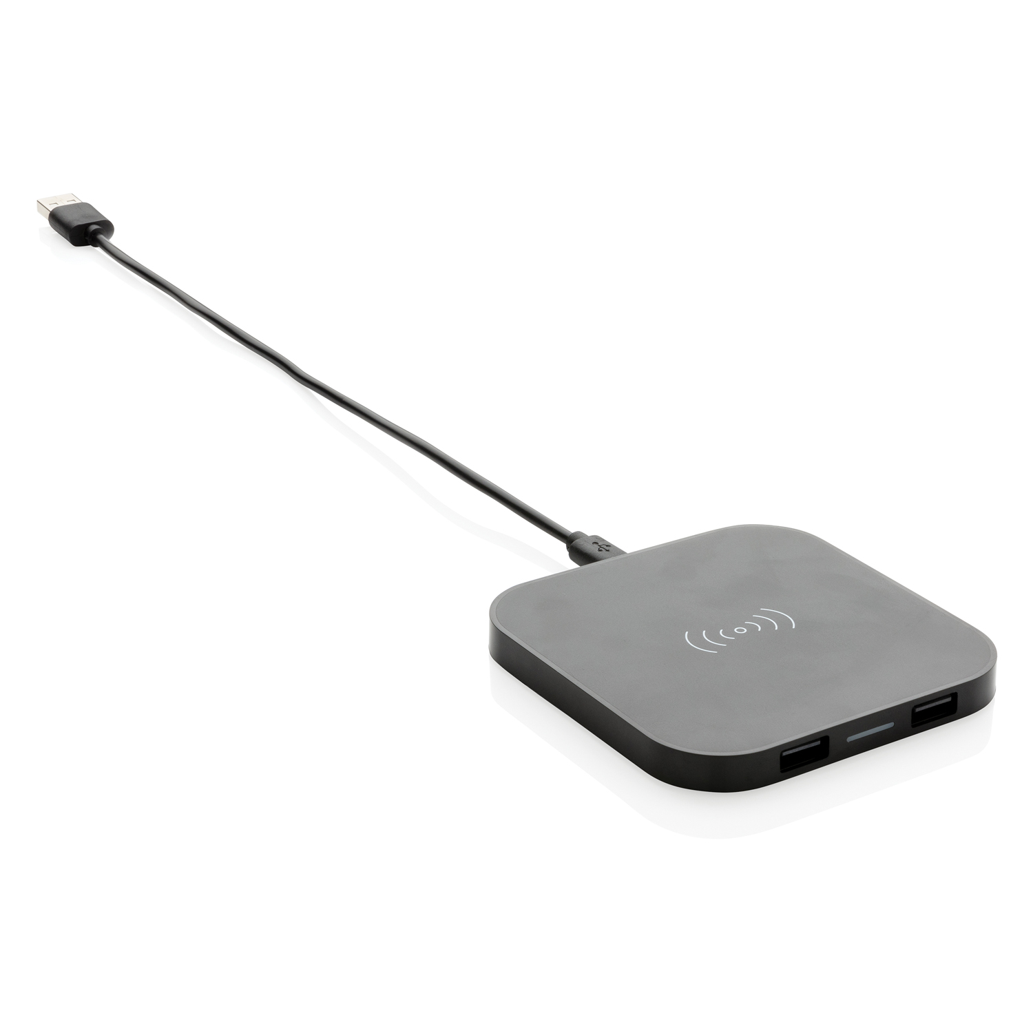 Док-станция для беспроводной зарядки подсоединяется к компьютеру через разъем USB и подходит для последнего поколения мобильных устройств Android и iOS. Более ранние модели можно подзарядить, подключив их через кабель к любому из двух USB-портов. Корпус станции изготовлен из прочного ABS-пластика. Не подходит для синхронизации, только для зарядки. Вход: 1 А. Выход: 5 В / 1 А. Беспроводной выход: 5 Вт.
